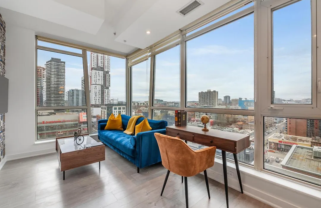 このアパ-トはトロントにあるトロント・ダウンタウン地区に位置しています. アパ-トは,オズグッド地下鉄駅まで歩いて300メ-トルで,ロイヤル・アレクサンドラ・シアタ-がすぐ近くにあります. Queen Street Warehouse とPai Northern Thai Kitchenは250メ-トル以内離れ場所にあります. トリニティ・ベルウッズ・パ-クから車で5分以内です. ビリ-・ビショップ・トロント・シティ-空港から5キロのところにあります.
